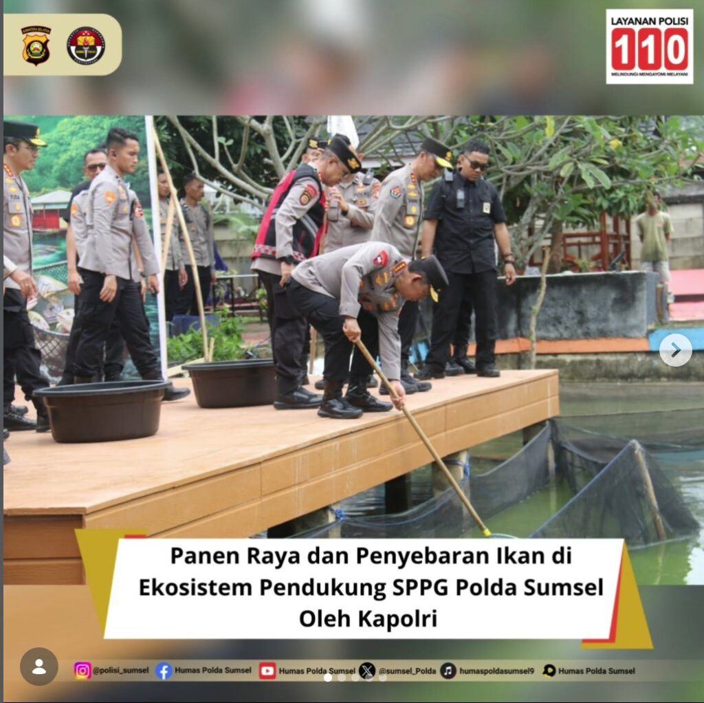 Kegiatan panen raya dan penyebaran ikan di ekosistem pendukung SPPG dilaksanakan oleh Kapolri Listyo Sigit Prabowo yang didampingi Kapolda di lingkungan Polda Sumatera Selatan.